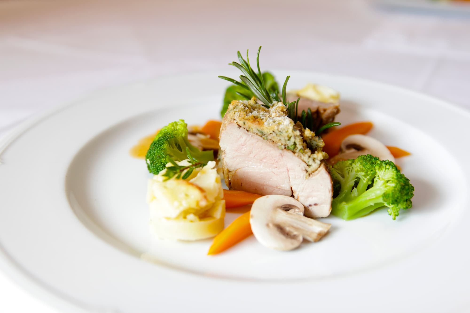Reichhaltiges Frühstücksbuffet am Morgen. Abends servieren wir ein mehrgängiges Menü im hauseigenen Restaurant.