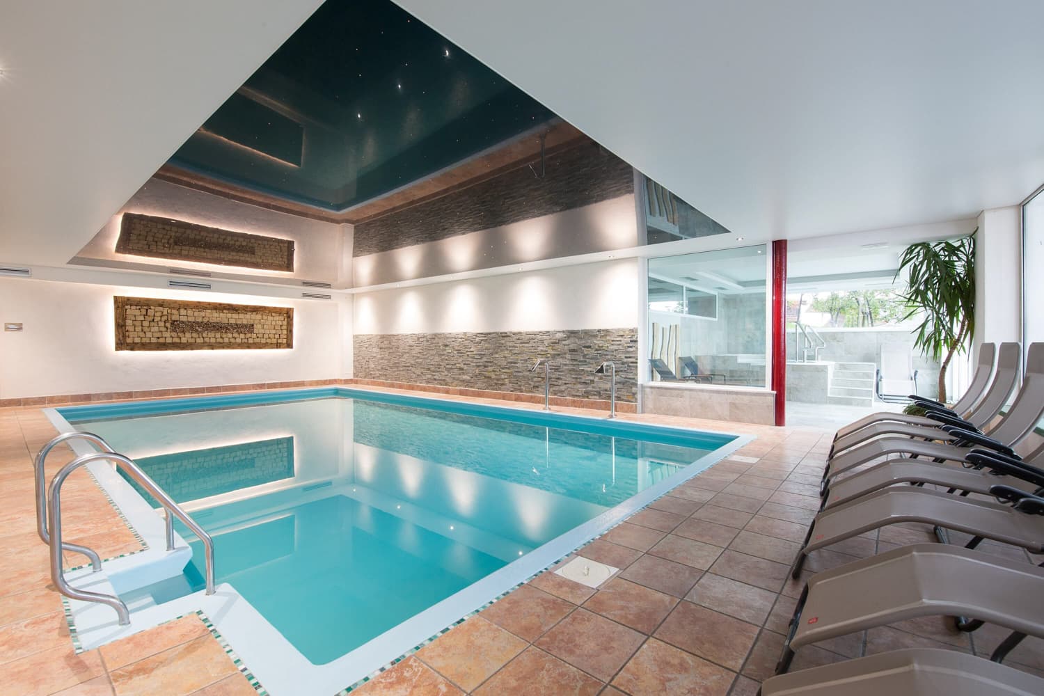 Hallenbad, Whirlpool, Saunen und Ruhezonen. Wohltuende Anwendungen mit ausgewählten Naturprodukten.